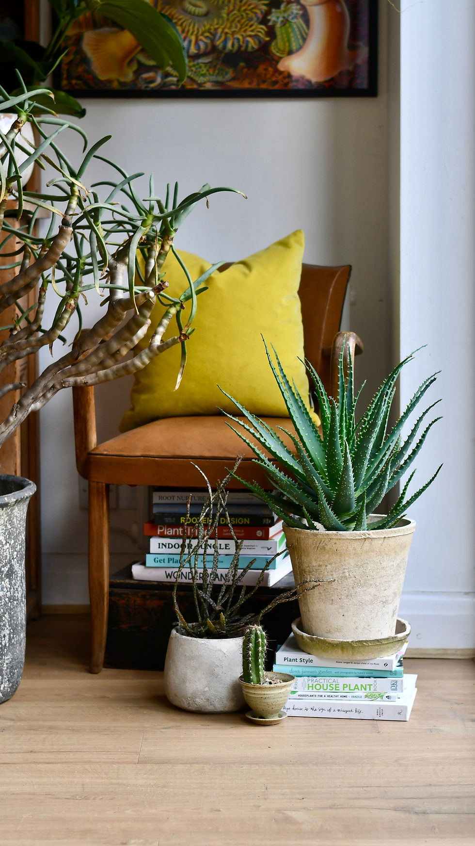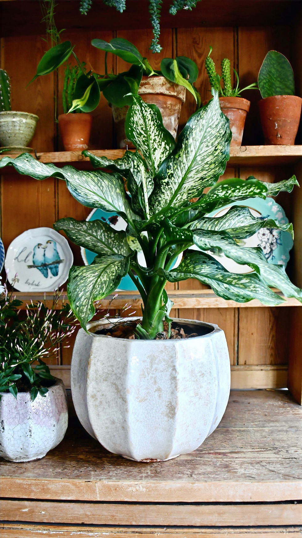 Our kitchen plants include aloe Vera, succulents and small houseplant ferns. In the kitchen, space comes at a premium so our plants add lots of colour and texture without taking up much room. While pothos, rhipsalis and hoya make beautiful trailing options that will tumble elegantly over the shelves